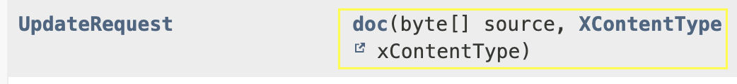 doc(byte[] source, XContentType xContentType) 다음과 같이 byte[] 인자 외에 ContentType을 명시해주도록 메서드 형식이 바뀌었다.